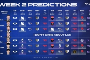 体育资讯1月21日讯 LCK官方发布了本周的赛事预测:今天全员预测DK获胜 / T1对战KT全都看好T1。