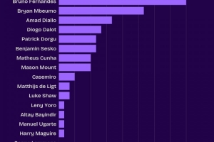 体育资讯10月31日讯 数据机构squakwa统计了本赛季曼联队内英超创造机会情况,B费仍独自领跑。