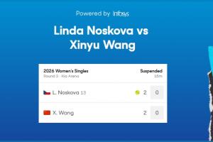 体育资讯01月24日讯 澳网女单第3轮,王欣瑜对阵诺斯科娃。两人第一盘战至2-2时,因为高温天气比赛暂停。