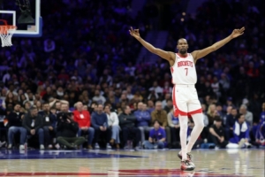 火箭(27-16):杜兰特32分7板3助、申京19分1板5助2断、谢泼德18分1助、阿门15分9板7助2断、史密斯11分10板3助2断2帽、奥科吉7分3板2断、卡佩拉5分9板1助3帽、泰特4分4板1助