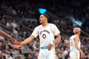 体育资讯10月31日讯 马刺今日107-101击败热火,赛后,本场贡献11分3板1助攻的马刺球员凯尔登-约翰逊接受媒体采访。