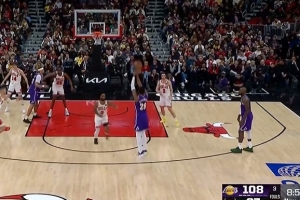 没升级!卡梅隆·约翰逊三分造科林斯犯规 裁判回放后吹普通犯规