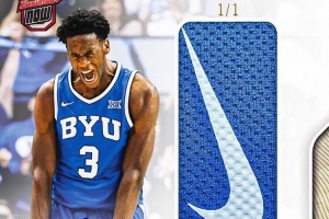 球星卡Topps官方社媒表示:“迪班萨在砍下43分那场比赛所穿球裤上的Nike Swoosh Logo已经被裁剪下来,制作成了一张1-of-1的亲笔签名球星卡。”