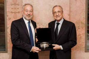 体育资讯10月22日讯 北京时间周四凌晨的欧冠联赛阶段第3轮比赛,皇马将在伯纳乌迎战尤文。本场比赛之前,皇马主席弗洛伦蒂诺和尤文主席费雷罗进行了正式会晤,前者代表俱乐部向后者赠送了礼物。