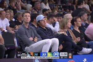 而就在刚刚,记者Olgun Uluc晒图,勇士总经理邓利维以及副总经理拉里·哈里斯目前在新西兰,观看NBL两位26年潜在首轮秀Karim Lopez和Dash Daniels的比赛。