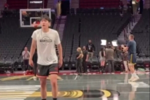 开拓者官推晒出杨瀚森赛前训练视频,官推写道:“训练直到偶像成为你的对手💪杨瀚森与约基奇一同热身,备战我们与丹佛掘金队的首场NBA杯比赛。”