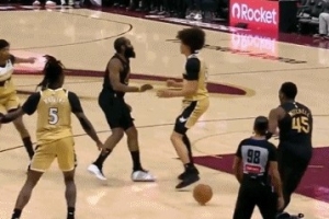 GIF-哈登不看人妙传米切尔空切放篮