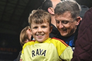 阿森纳门将拉亚赛后将自己的球衣和手套送给了一位小球迷,展现了自己的亲和力。