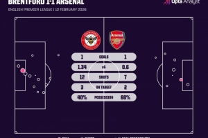体育资讯2月13日讯 本轮英超焦点战,布伦特福德1-1战平阿森纳,延续了近期出色势头。