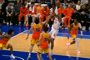 老队友!波尔津吉斯赛前热身 杰伦·布朗&怀特上来与其互动