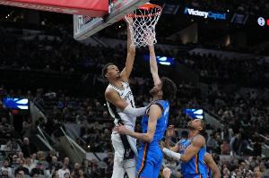 体育资讯2月24日讯 NBA常规赛,马刺114-103力克活塞,取得9连胜。