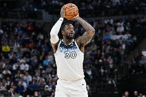 森林狼球员兰德尔上半场表现挺全面,三分手感也不错。