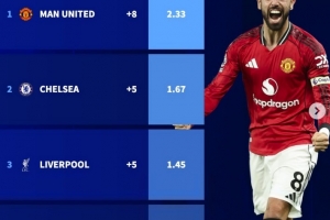 1、曼联 2.33分,净胜球+8