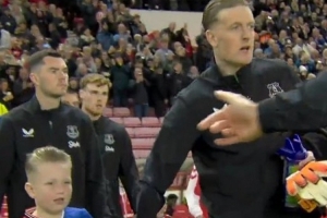 此役皮克福德担任埃弗顿首发门将,他的儿子身穿桑德兰和埃弗顿的拼接球衣入场。
