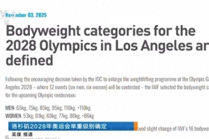 体育资讯11月4日讯 国际举重联合会公布了洛杉矶奥运会的举重项目设置。洛杉矶奥运会举重比赛将有男、女各6个小项,共12枚金牌。