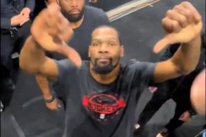 杜兰特与球迷互倒竖大拇指比“踩”