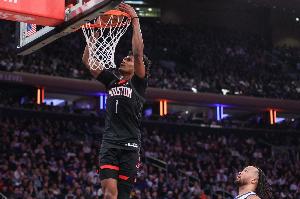 此役阿门·汤普森频频杀伤,出场38分钟10投6中,三分1中1、罚球14中10砍下23分3篮板6助攻1盖帽,正负值+12。