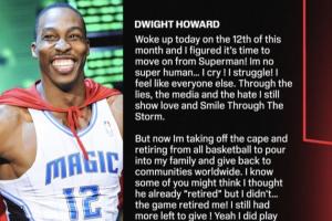 体育资讯03月13日讯 今日,2025年奈史密斯篮球名人堂成员、2004年NBA状元秀、2019-20赛季NBA总冠军&3届DPOY(2009、2010、2011年)&5届NBA一阵(2008-2012年)&4届最佳防守阵容一阵(2009-2012年)&8次入选全明星阵容8次(2007-2014年)、5次篮板王(2008、2009、2010、2012、2013年)、2次盖帽王(2009、2010年)德怀特·霍华德在自己的个人社媒发布长文宣布退役。