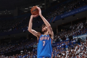 雷霆球员霍姆格伦在杰伦-威廉姆斯缺阵、亚历山大上半场表现不佳的情况下撑起球队,以超高效率帮助球队咬住比分。