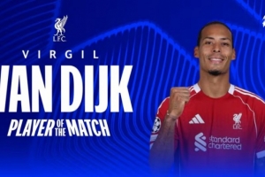 赛后范戴克也是当选全场最佳球员。