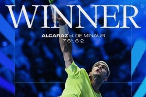 体育资讯11月9日讯 ATP总决赛吉米·康纳斯组首轮,头号种子阿尔卡拉斯7-6(5) 6-2击败7号种子德米纳尔,顺利取得小组赛开门红。