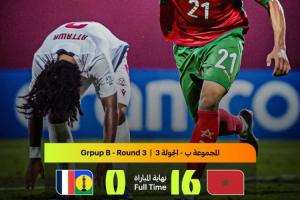 本场比赛新喀里多尼亚早早被罚下两人,第31分钟起就9人作战。摩洛哥U17上半场打入7球,下半场再入9球,全场狂轰78脚射门,最终16-0赢下了这场比赛。