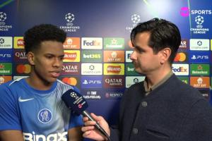 记者: 我想问你两个时刻。首先,当你得知将在自己的首场欧冠比赛中首发时,你是什么感觉?其次,当恩佐把点球让给你主罚时,你又是怎样的心情?