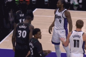GIF-小萨极慢欧洲步上篮不中,自投自抢补篮被犯规