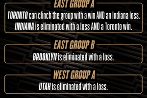 东部A组:若猛龙战胜奇才且步行者不敌骑士,则猛龙晋级淘汰赛,步行者将被淘汰。