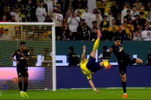 C罗今日代表利雅得胜利打进的精彩倒钩