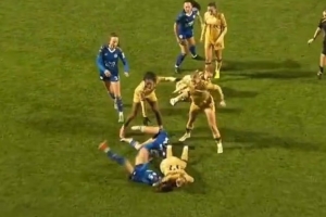 在上周末的这场比赛中,水晶宫女足球星鲁埃沙·利特尔约翰与莱斯特城球员汉娜·凯恩发生激烈争执。随后,可见这位爱尔兰中场抓住汉娜·凯恩的脖子,随后将她摔倒在地。
