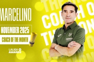 体育资讯12月1日讯 西甲官方消息,黄潜主帅马塞利诺当选11月最佳教练。