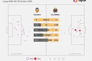 体育资讯10月26日讯 西甲第10轮比赛,比利亚雷亚尔客场2-0击败瓦伦西亚。