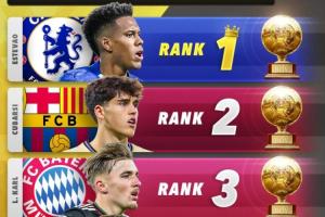 体育资讯12月04日讯 Score90列出了2026年金童排名预测,埃斯特旺居首,库巴西、卡尔分列二三。