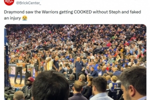 美媒BrickCenter嘲讽道:“追梦看到勇士在没有库里的情况下被打爆了,所以他假装自己受伤了。”