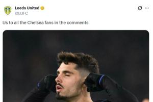 体育资讯12月05日讯 英超第14轮,升班马利兹联主场3-1爆冷击败切尔西,赛后,利兹联官方社媒发文“挑衅”切尔西球迷。