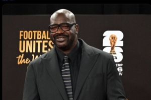 体育资讯12月5日讯 世界杯官方晒照,前NBA球星奥尼尔已经抵达抽签仪式现场。