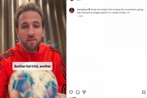 体育资讯12月7日讯 拜仁在本轮德甲5-0完胜斯图加特,凯恩替补上演帽子戏法。他也在赛后通过社媒纪念。