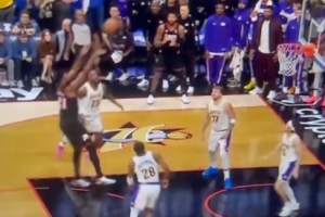 76人主场108-112不敌湖人。后1分钟76人落后3分,恩比德背打里夫斯,到了禁区却转身后仰跳投不中。