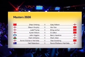 体育资讯12月8日讯 斯诺克大师赛首轮对阵出炉,丁俊晖再战特鲁姆普,赵心童对阵加里·威尔逊,奥沙利文对阵罗伯逊,塞尔比对阵肖国栋。