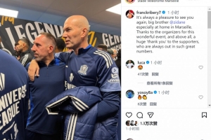 里贝里与齐达内出席了在马赛举办的“宇宙联赛”活动,里贝里社媒晒出与齐达内的合照,配文:“再次见到你总是很高兴,老大哥齐达内,尤其是在马赛的主场。感谢组织方带来这场精彩的活动,更要衷心感谢那些总是大批到场支持我们的球迷们。”