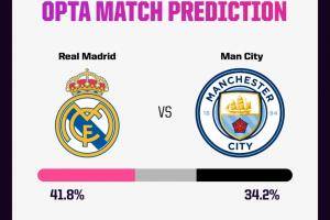 体育资讯12月10日讯 北京时间12月11日凌晨4点,欧冠联赛阶段第6轮皇马将在主场大战曼城,赛前数据机构Opta略微看好皇马取胜。