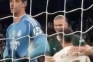 体育资讯12月11日讯 欧冠第6轮,皇马主场1-2不敌曼城,场边镜头记录下了皇马一次角球防守中有趣的画面。