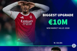 涨幅最大:萨利巴,+1000万欧,9000万欧