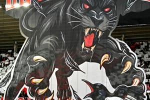 赛前桑德兰主场晒出震撼TIFO:黑猫撕咬喜鹊。