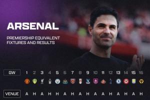 本赛季,阿森纳前16轮取得11胜3平2负积36分的战绩,其中客场分别输给利物浦和维拉,对阵曼城、桑德兰、切尔西时打平。