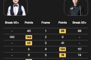 肖恩·墨菲打出单杆140分,刘宏宇打出一杆破百(117)和两杆50+(88、74),双方战至决胜局,肖恩·墨菲以4-3的比分战胜刘宏宇晋级32强。