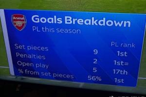 【定位球大师👑】天空体育统计阿森纳本赛季英超16个进球分布: