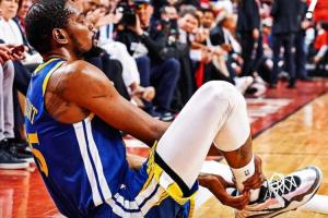 2019年NBA总决赛,效力于勇士的KD正与猛龙争夺总冠军。在之前的西部半决赛对阵火箭的系列赛中,杜兰特小腿拉伤,并因此缺席了接下来的西部决赛和总决赛的前四场比赛。勇士陷入绝境,在总决赛中以1-3落后。外界的巨大压力和球队的危急形势,共同促成了他G5的复出。但在比赛第二节杜兰特无对抗倒地提前退赛。赛后核磁共振检查结果确认,杜兰特遭遇了右脚跟腱断裂,赛季报销。