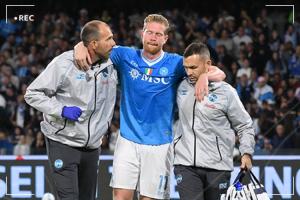 在那不勒斯vs国米的比赛中,德布劳内第33分钟点射破门时拉伤腿筋,随后被队医搀扶下场伤退。